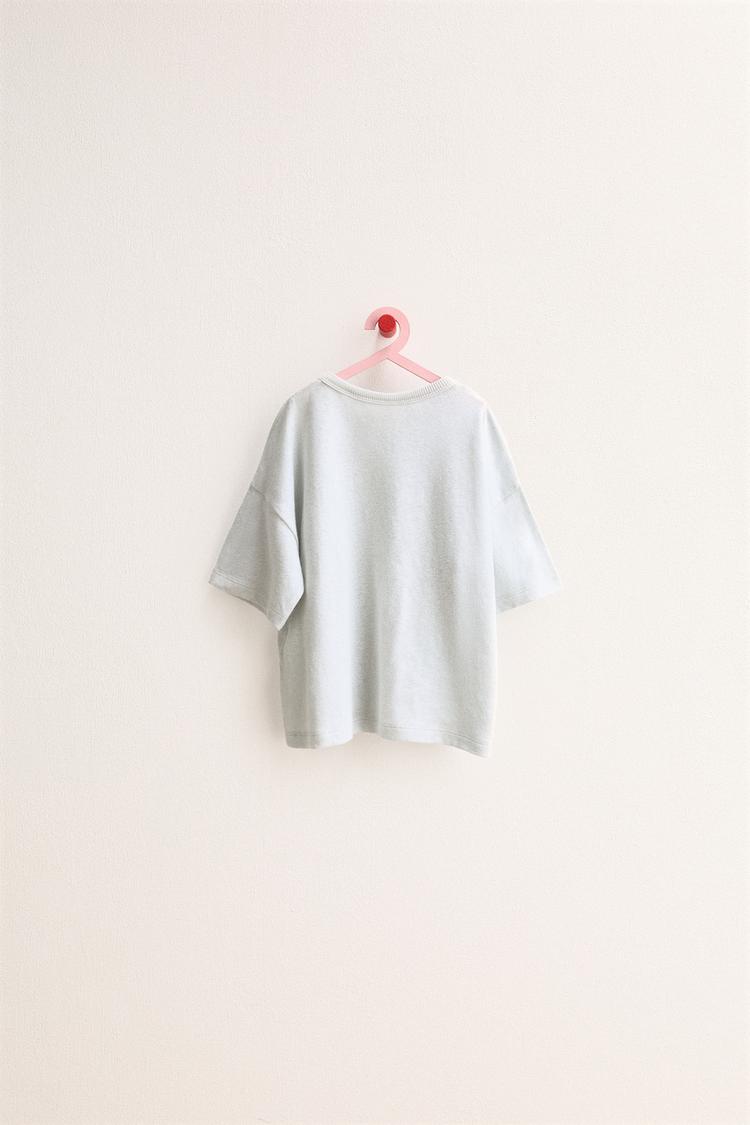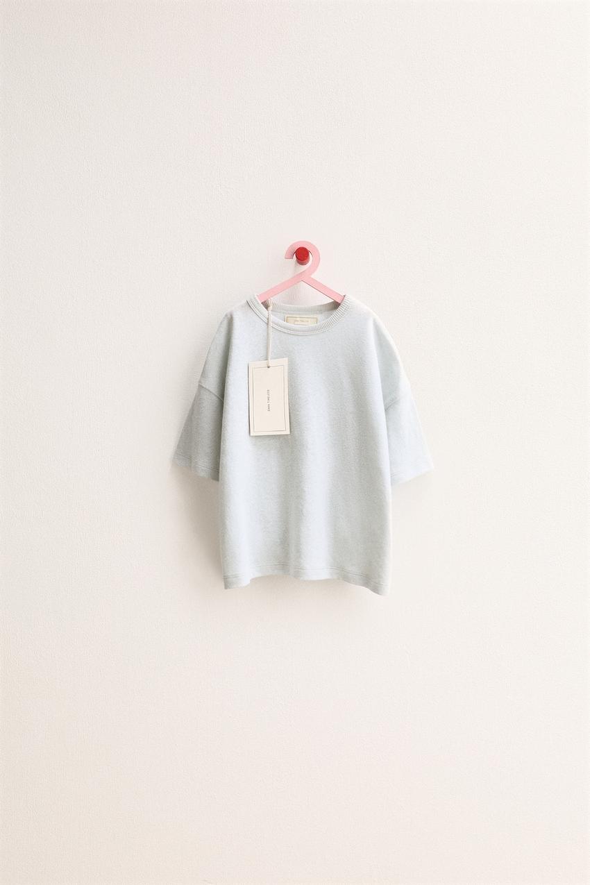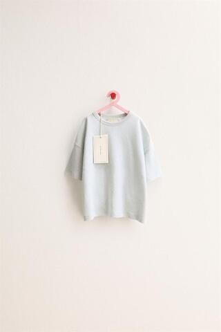 ZARA TIMELESS - ОДНОТОННАЯ ФУТБОЛКА ИЗ ХЛОПКА И ЛЬНА, ГОЛУБОЙ