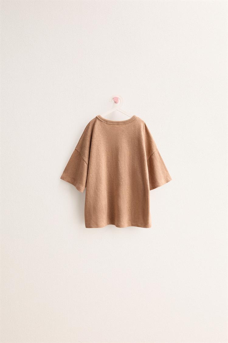 ZARA TIMELESS - ОДНОТОННАЯ ФУТБОЛКА ИЗ ХЛОПКА И ЛЬНА, РЫЖЕВАТО-КОРИЧНЕВЫЙ