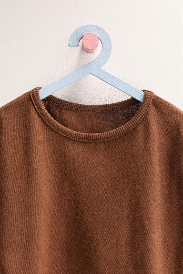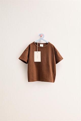 ZARA TIMELESS - ОДНОТОННАЯ ФУТБОЛКА ИЗ ХЛОПКА И ЛЬНА, ШОКОЛАДНЫЙ