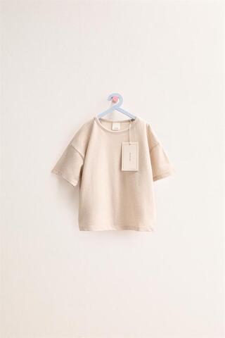 ZARA TIMELESS - ОДНОТОННАЯ ФУТБОЛКА ИЗ ХЛОПКА И ЛЬНА, СВЕТЛО-БЕЖЕВЫЙ