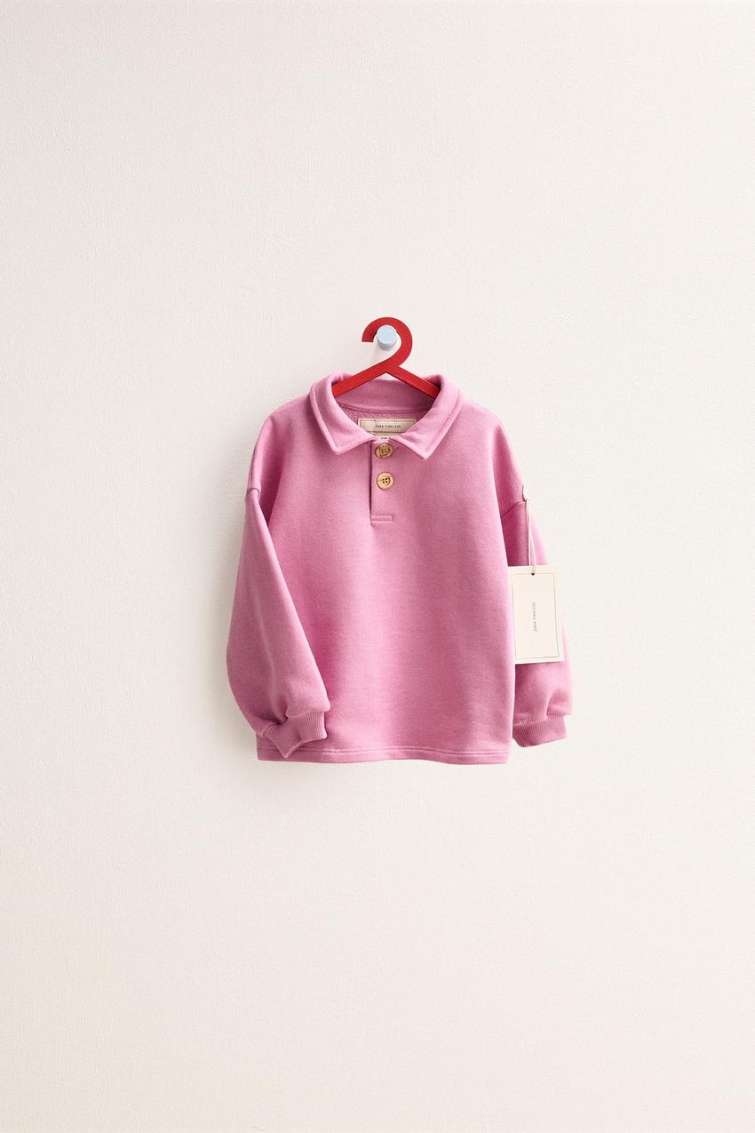ZARA TIMELESS - ОДНОТОННАЯ ТОЛСТОВКА С ВОРОТНИКОМ ПОЛО, РОЗОВЫЙ