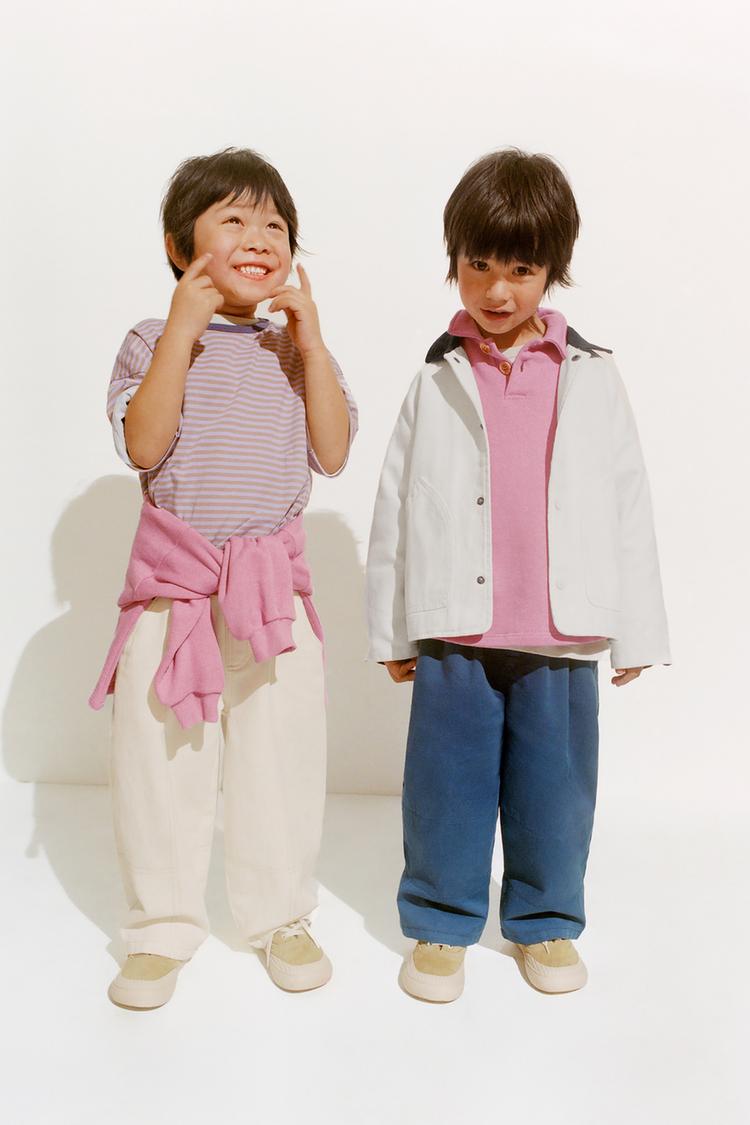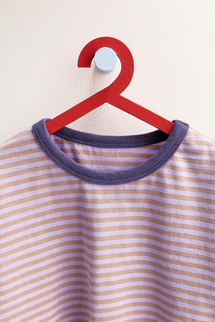 ZARA TIMELESS - ПОЛОСАТАЯ ФУТБОЛКА С КОНТРАСТНЫМ ВОРОТНИКОМ, СВЕТЛО-СИРЕНЕВЫЙ