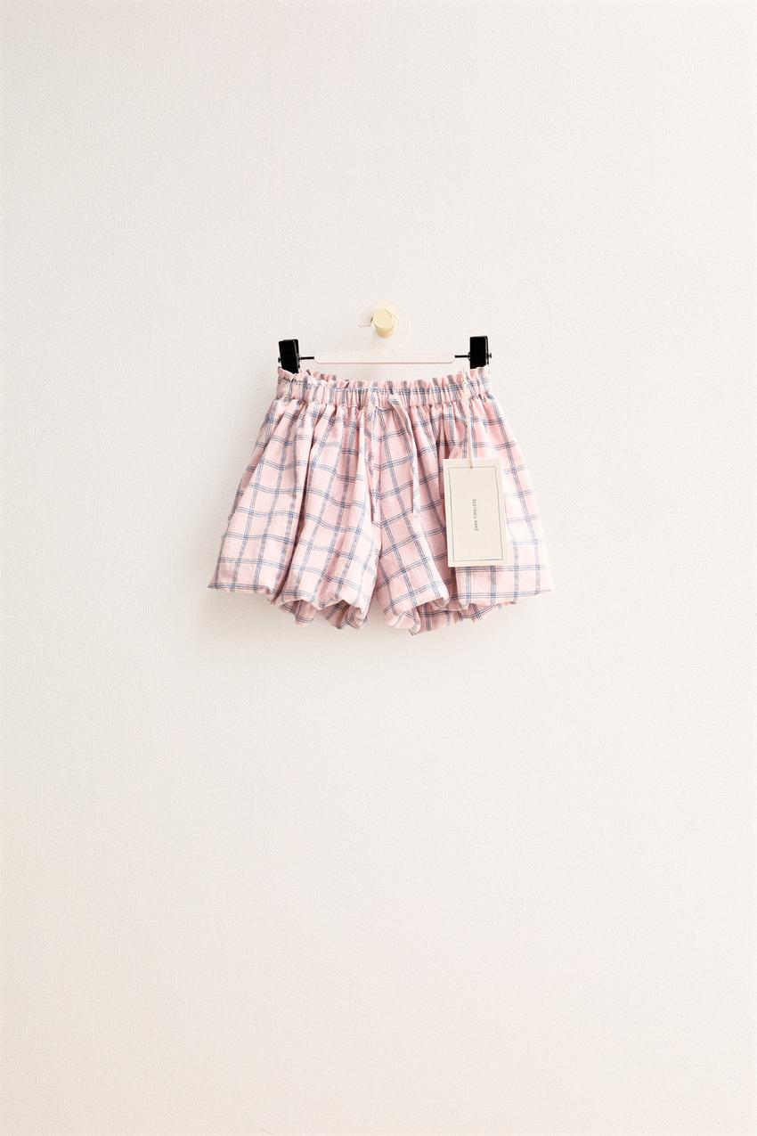 ZARA TIMELESS - ШОРТЫ-БЕРМУДЫ В КЛЕТКУ, РОЗОВЫЙ