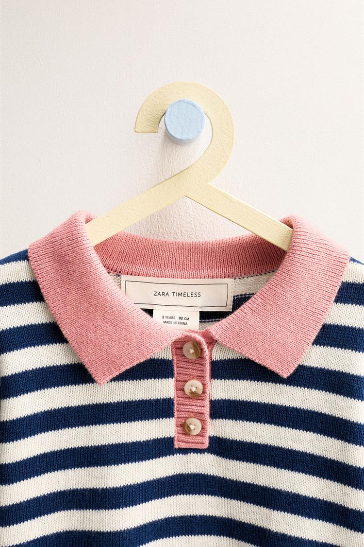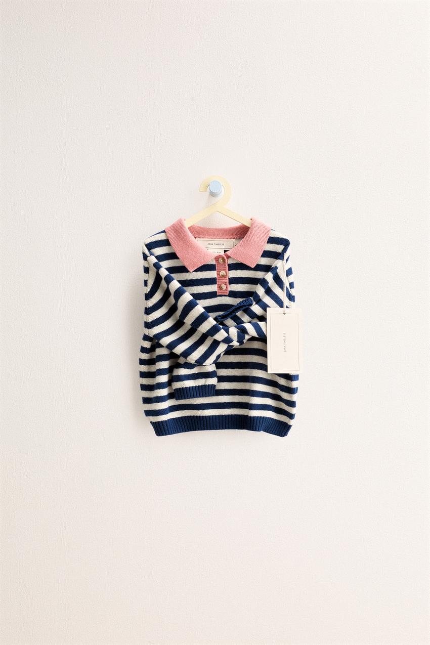 ZARA TIMELESS — СВИТЕР ПОЛО В ПОЛОСКУ, ЭКРЮ/СИНИЙ