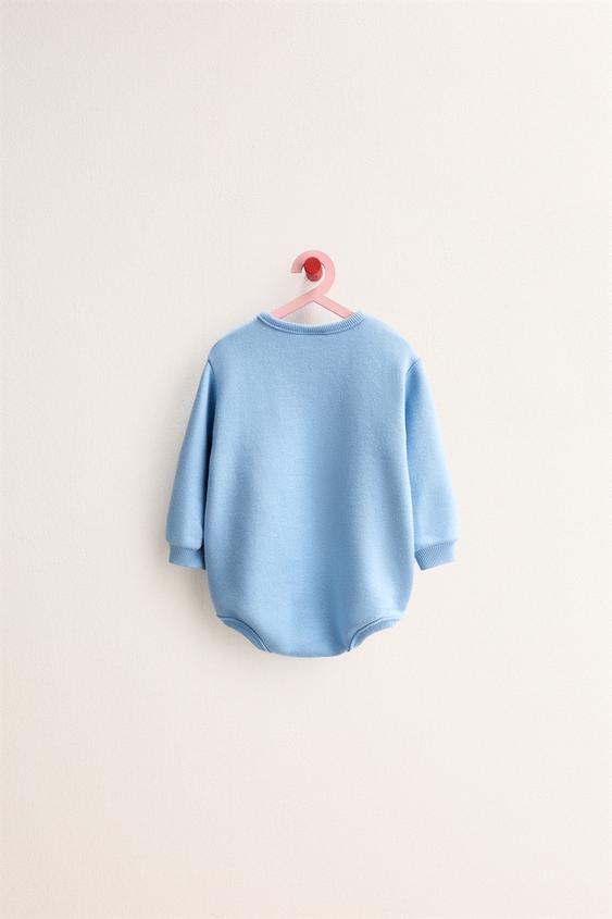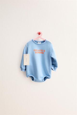 ZARA TIMELESS - ВЕЛЬВЕТОВЫЙ КОМБИНЕЗОН С ТЕКСТОМ, ГОЛУБОЙ