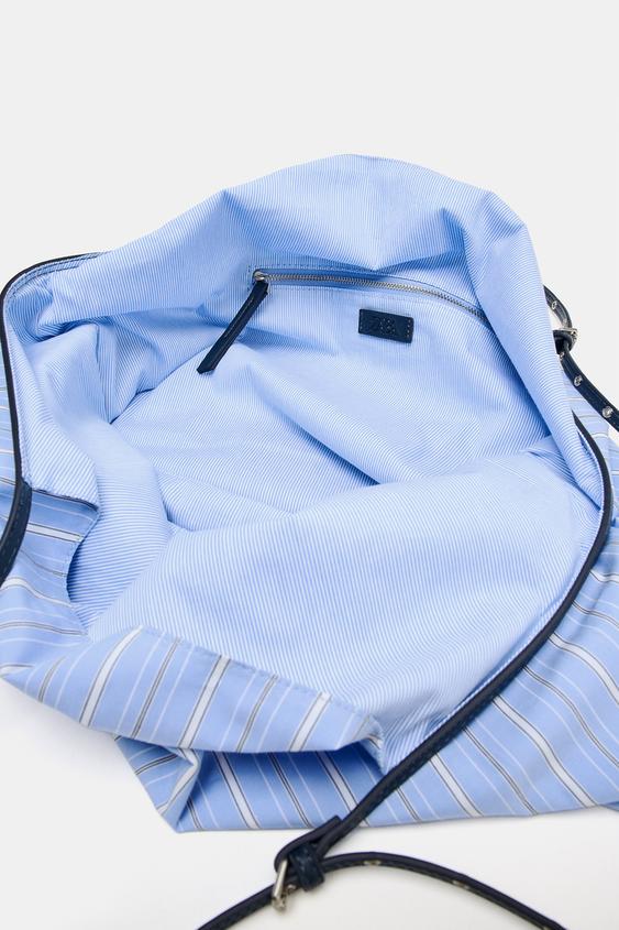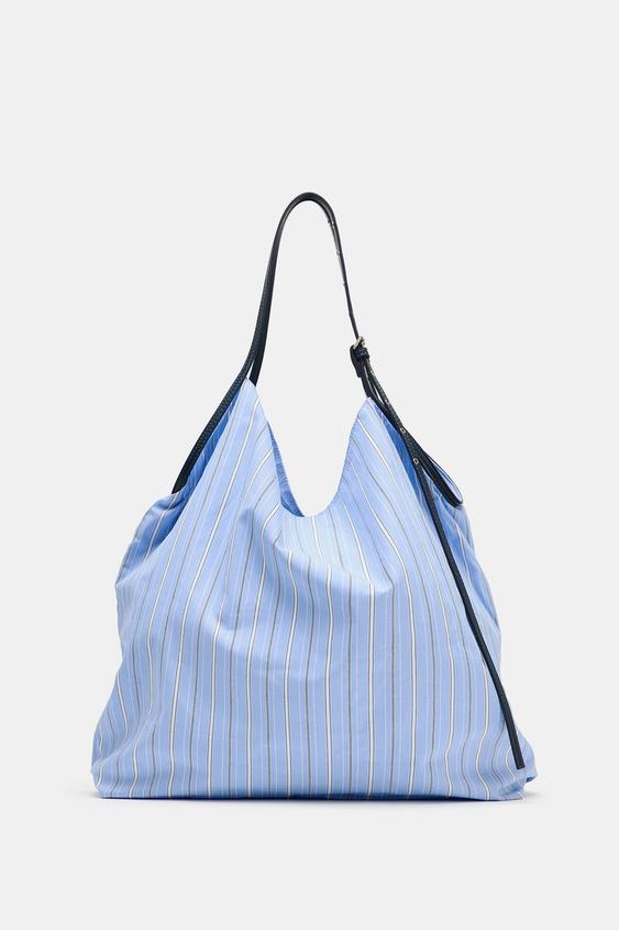 ZARA ТКАНЕВАЯ СУМКА-ШОПЕР, СИНИЙ