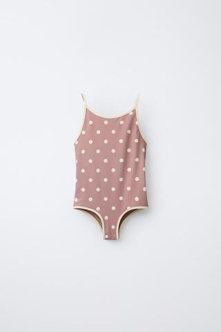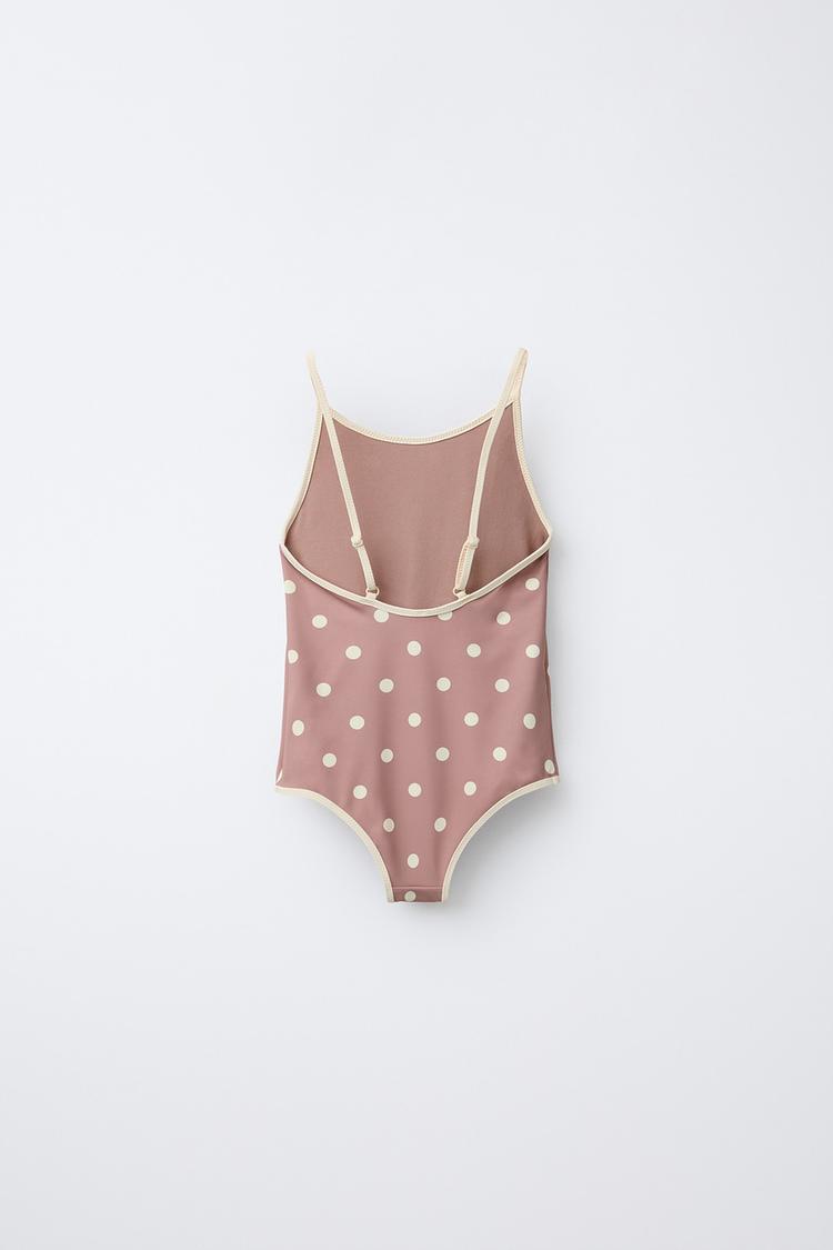 ZARA КУПАЛЬНИК В ГОРОШЕК С КОНТРАСТНЫМИ ДЕТАЛЯМИ, КОРИЧНЕВЫЙ