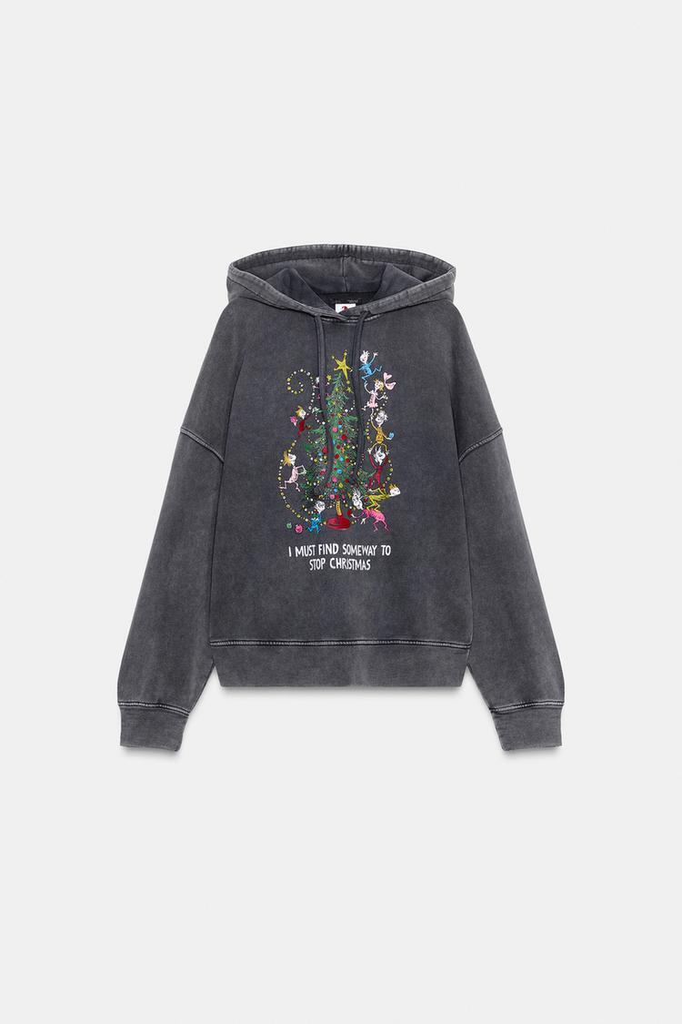 ZARA ТОЛСТОВКА GRINCH™ РОЖДЕСТВО С ЭФФЕКТОМ ПОТЕРТОСТИ, АНТРАЦИТОВО-СЕРЫЙ