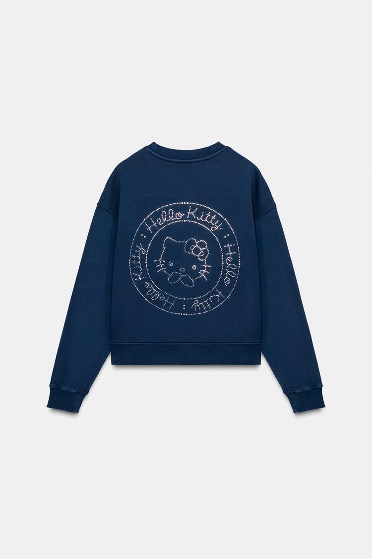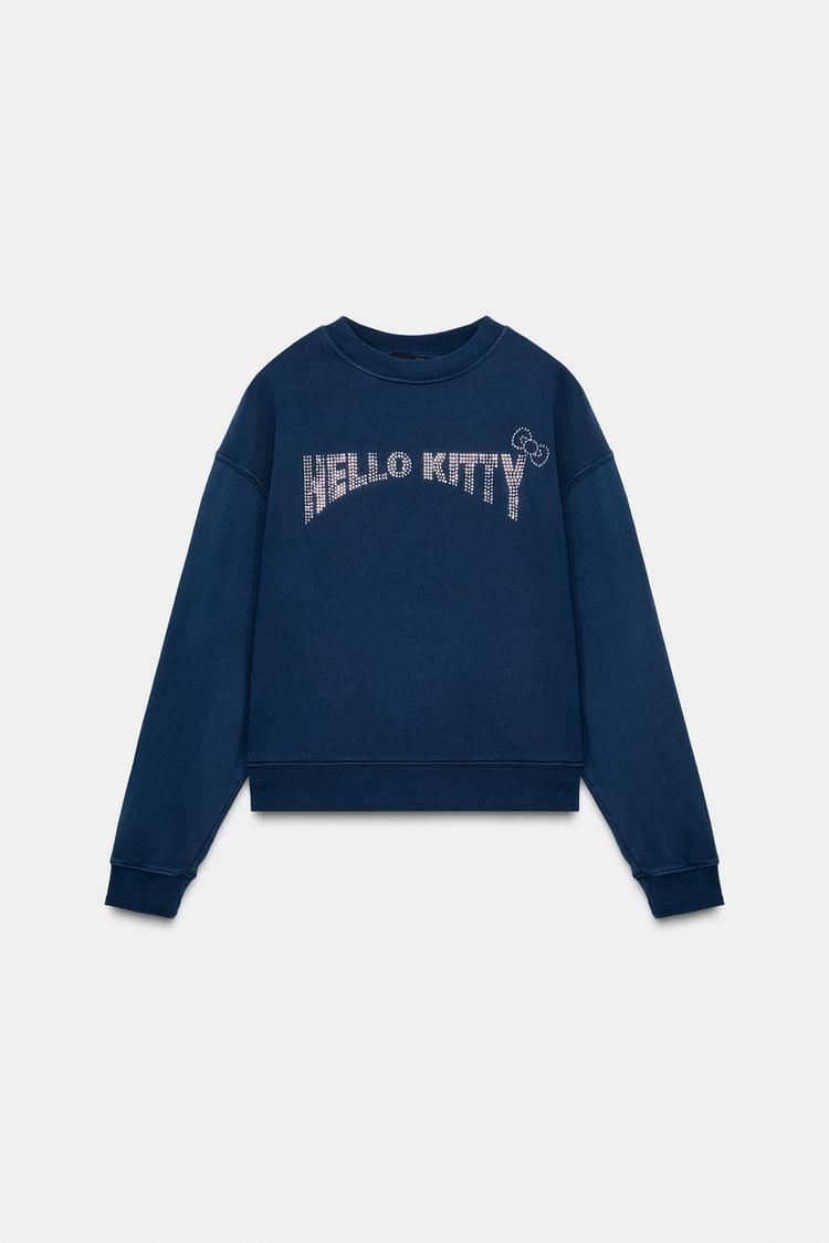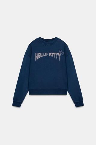 ZARA ТОЛСТОВКА HELLO KITTY © 2025 SANRIO С ЭФФЕКТОМ ПОТЕРТОСТИ, МОРСКОЙ СИНИЙ