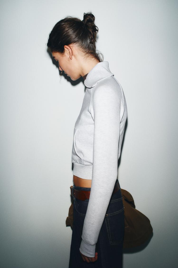 ZARA ТОЛСТОВКА ИЗ ФЛИСА НА МОЛНИИ, СЕРЫЙ МЕЛАНЖ