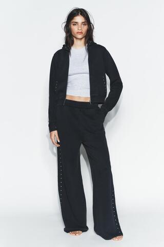 ZARA ТОЛСТОВКА ИЗ ФЛИСА С ЭФФЕКТОМ ПОТЕРТОСТИ И ЗАКЛЕПКАМИ, УГОЛЬНЫЙ