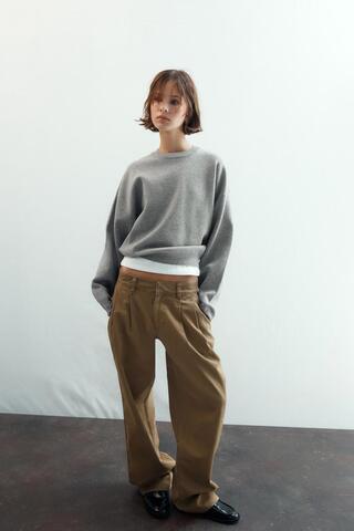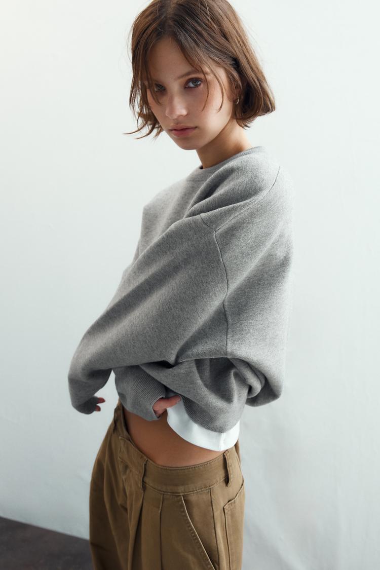 ZARA ТОЛСТОВКА ИЗ ГЛАДКОГО ТРИКОТАЖА, СЕРЫЙ МЕЛАНЖ