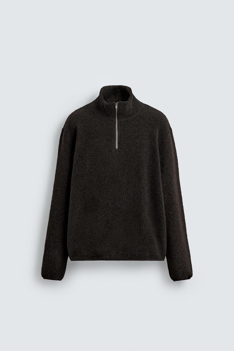 ZARA ТОЛСТОВКА ИЗ ИСКУССТВЕННОЙ ОВЧИНЫ С ВОРОТНИКОМ НА МОЛНИИ, ТЕМНО-КОРИЧНЕВЫЙ