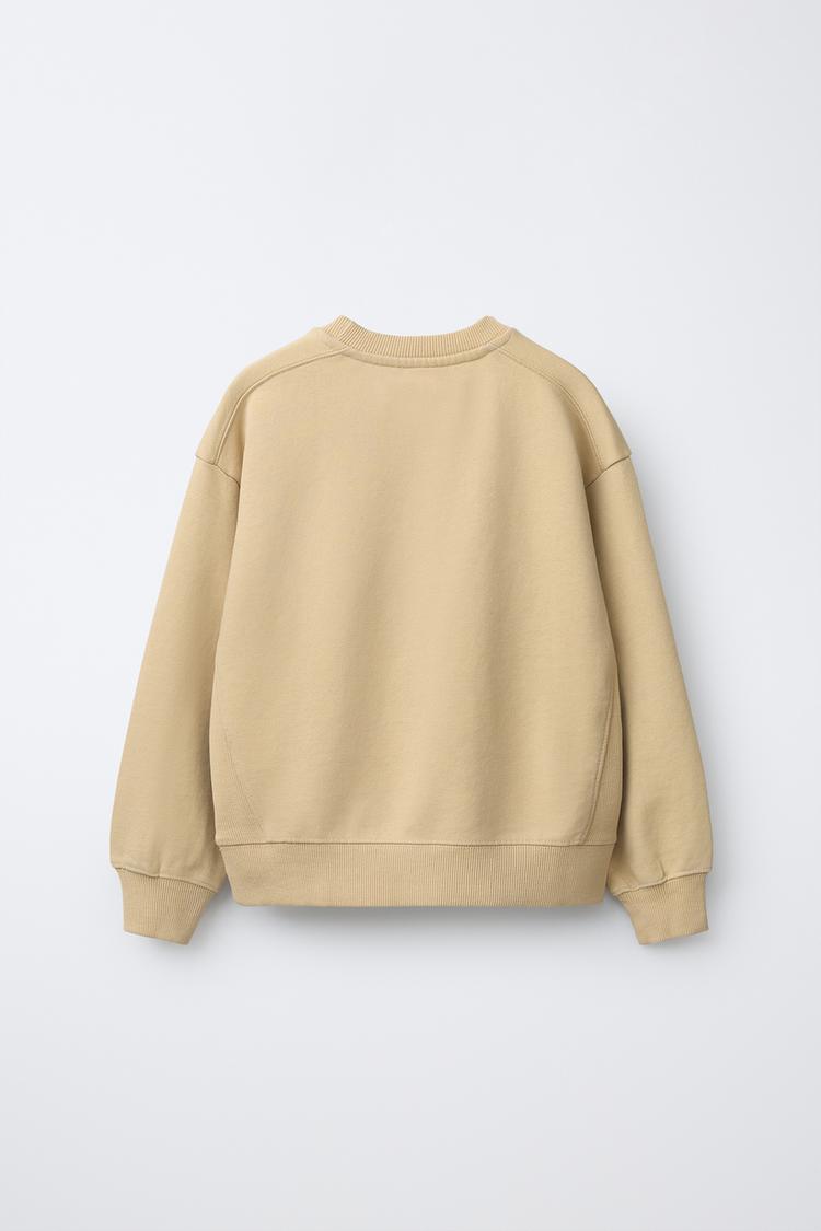 ZARA ТОЛСТОВКА ИЗ КРАШЕНОЙ ТКАНИ С НАШИВКОЙ, БЕЖЕВЫЙ