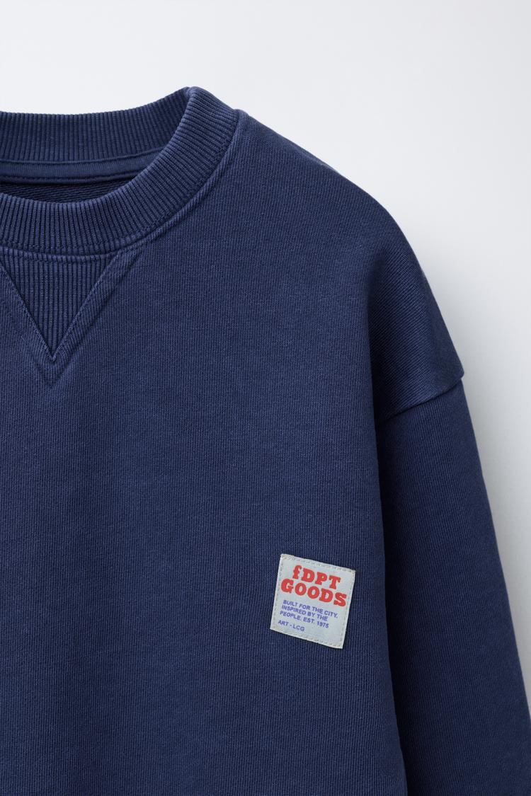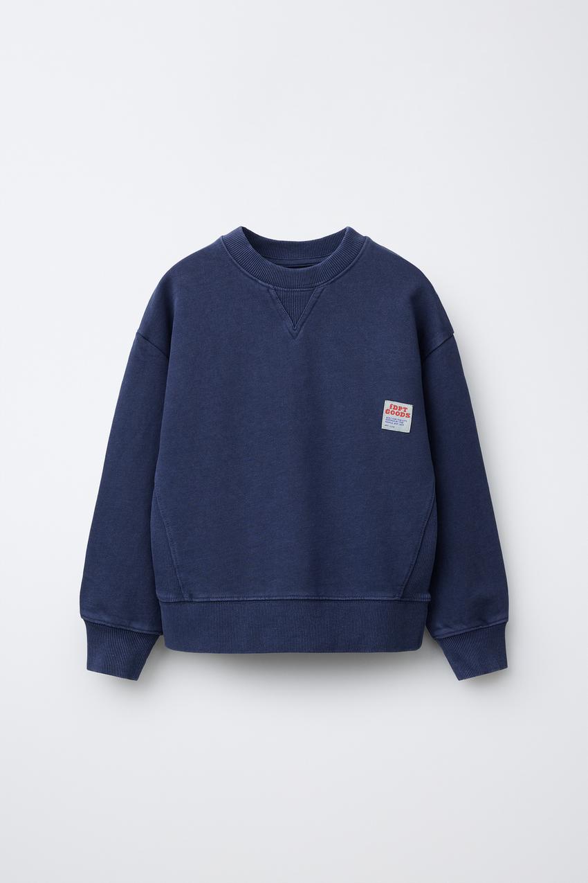 ZARA ТОЛСТОВКА ИЗ КРАШЕНОЙ ТКАНИ С НАШИВКОЙ, СИНИЙ