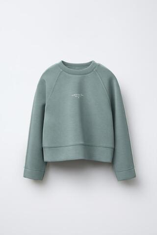 ZARA ТОЛСТОВКА ИЗ МОДАЛА С НАДПИСЬЮ, ЗЕЛЕНЫЙ