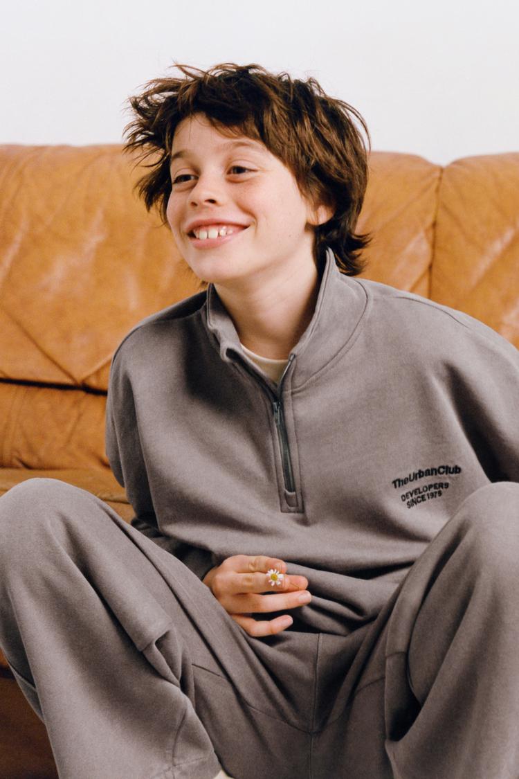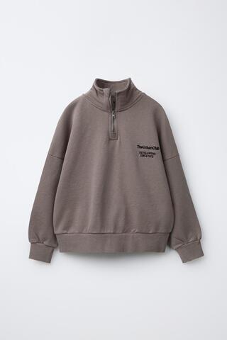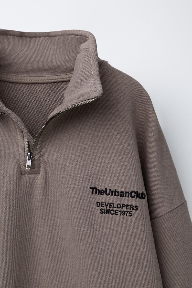 ZARA ТОЛСТОВКА ИЗ МЯГКОЙ ТКАНИ С НАДПИСЬЮ, СЕРО-КОРИЧНЕВЫЙ