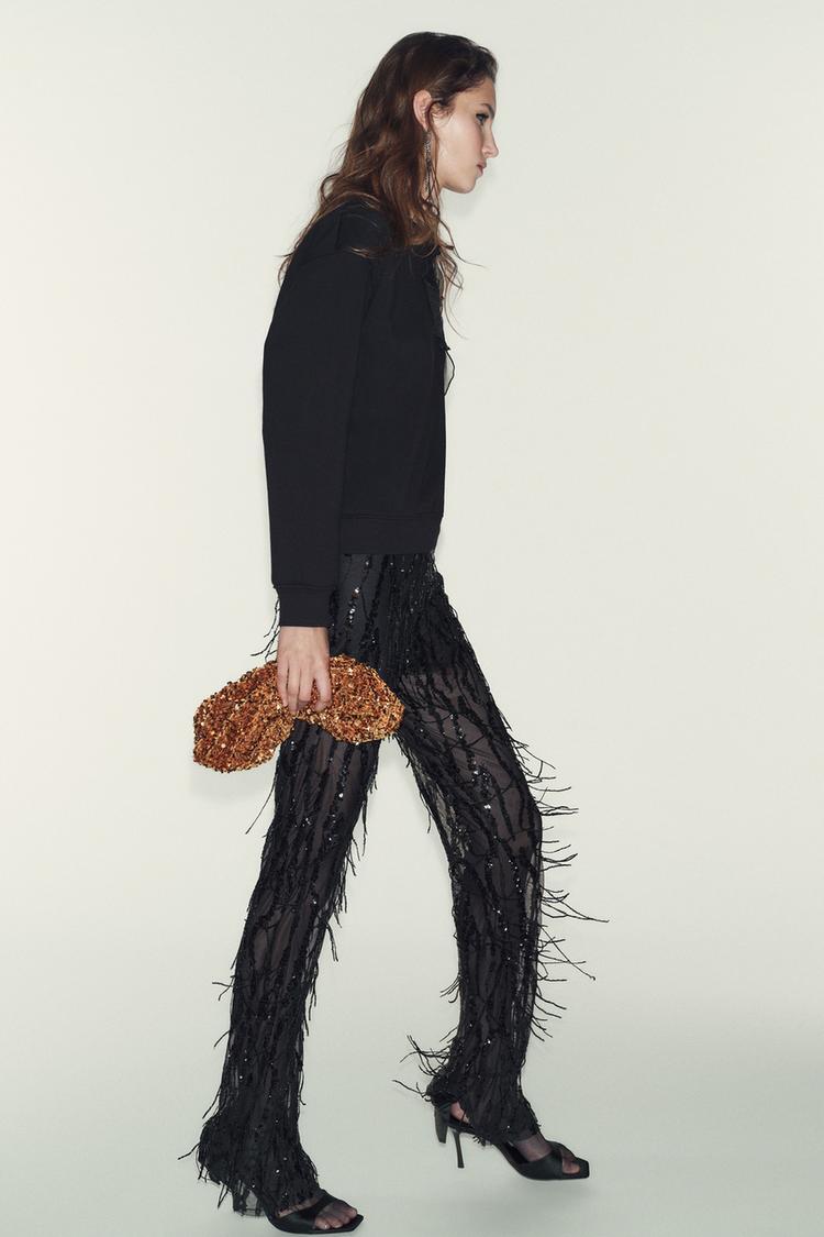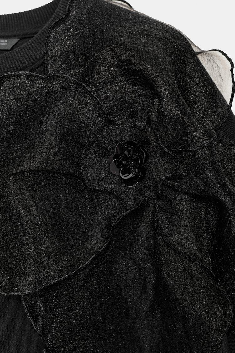 ZARA ТОЛСТОВКА ИЗ ОРГАНЗЫ С ЦВЕТОЧНЫМ ПРИНТОМ, ЧЕРНЫЙ