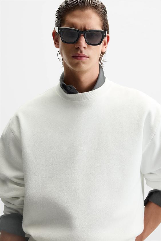 ZARA ТОЛСТОВКА ИЗ РЕЛЬЕФНОЙ ТКАНИ, ЖЕЛТОВАТО-БЕЛЫЙ