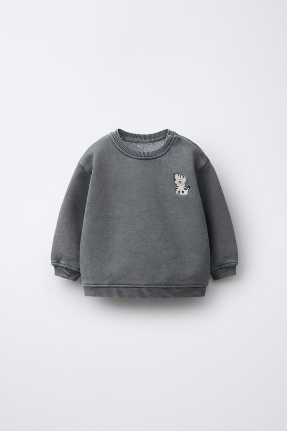 ZARA ТОЛСТОВКА ИЗ ТКАНИ С ЭФФЕКТОМ ПОТЕРТОСТИ С ВЫШИВКОЙ, АНТРАЦИТОВО-СЕРЫЙ