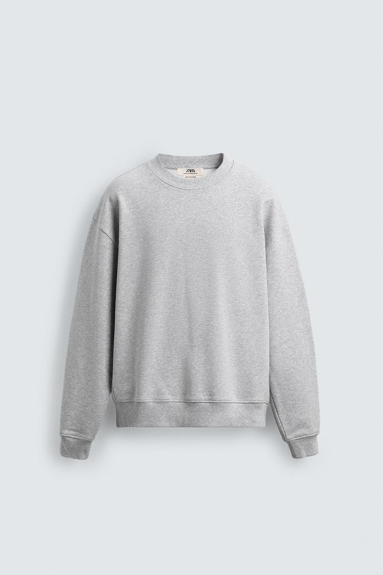 ZARA ТОЛСТОВКА КЛАССИЧЕСКОГО КРОЯ С КРУГЛЫМ ВЫРЕЗОМ, СЕРЫЙ МЕЛАНЖ