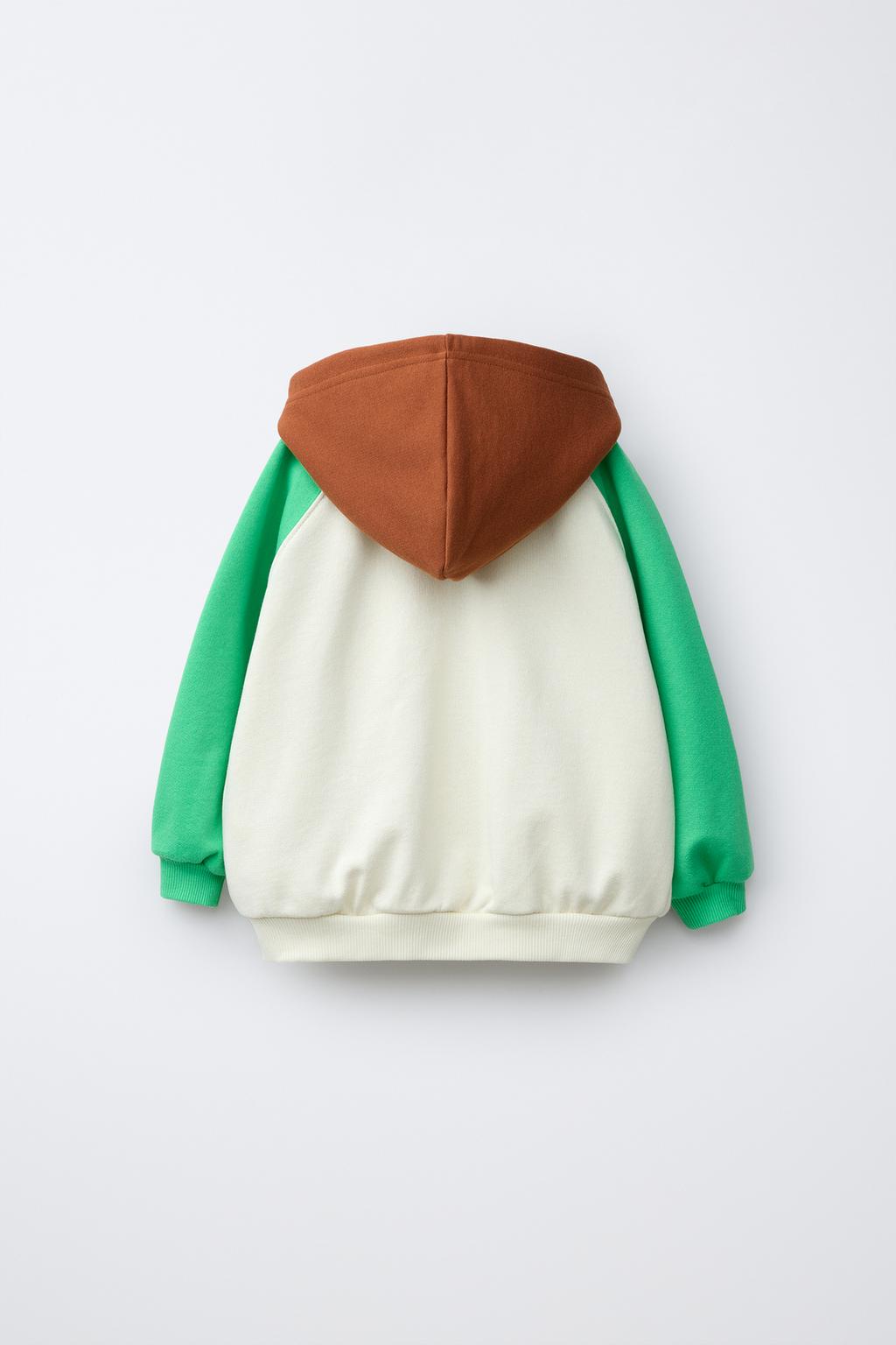 ZARA ТОЛСТОВКА КОЛОР-БЛОК С ВЫШИТЫМ ЦВЕТКОМ, РАЗНОЦВЕТНЫЙ