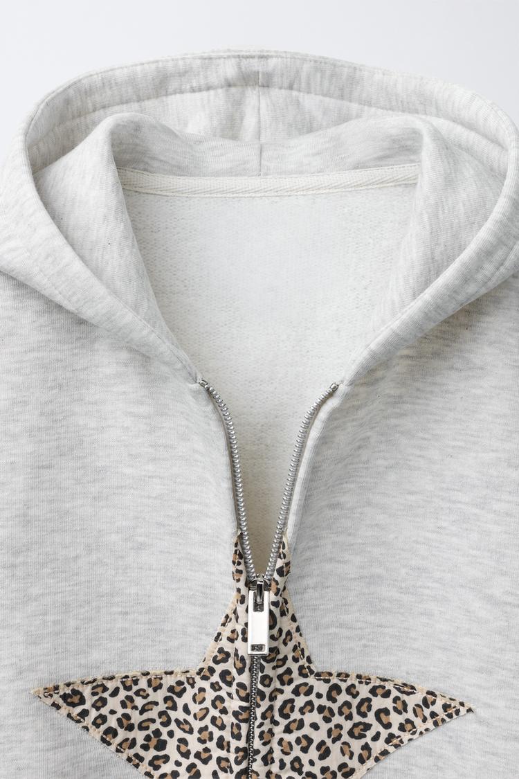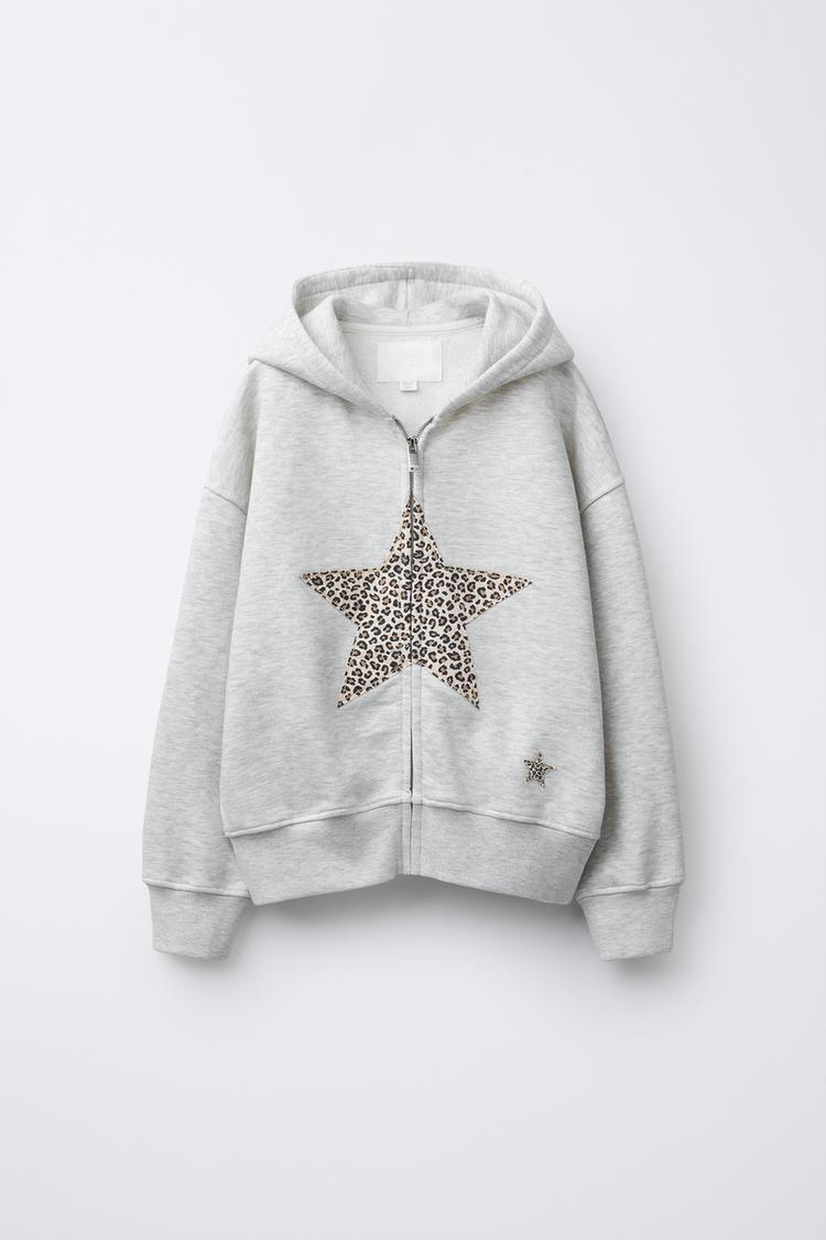 ZARA ТОЛСТОВКА НА МОЛНИИ С АНИМАЛИСТИЧЕСКИМ ПРИНТОМ ЗВЕЗДЫ, СЕРЫЙ МЕЛАНЖ