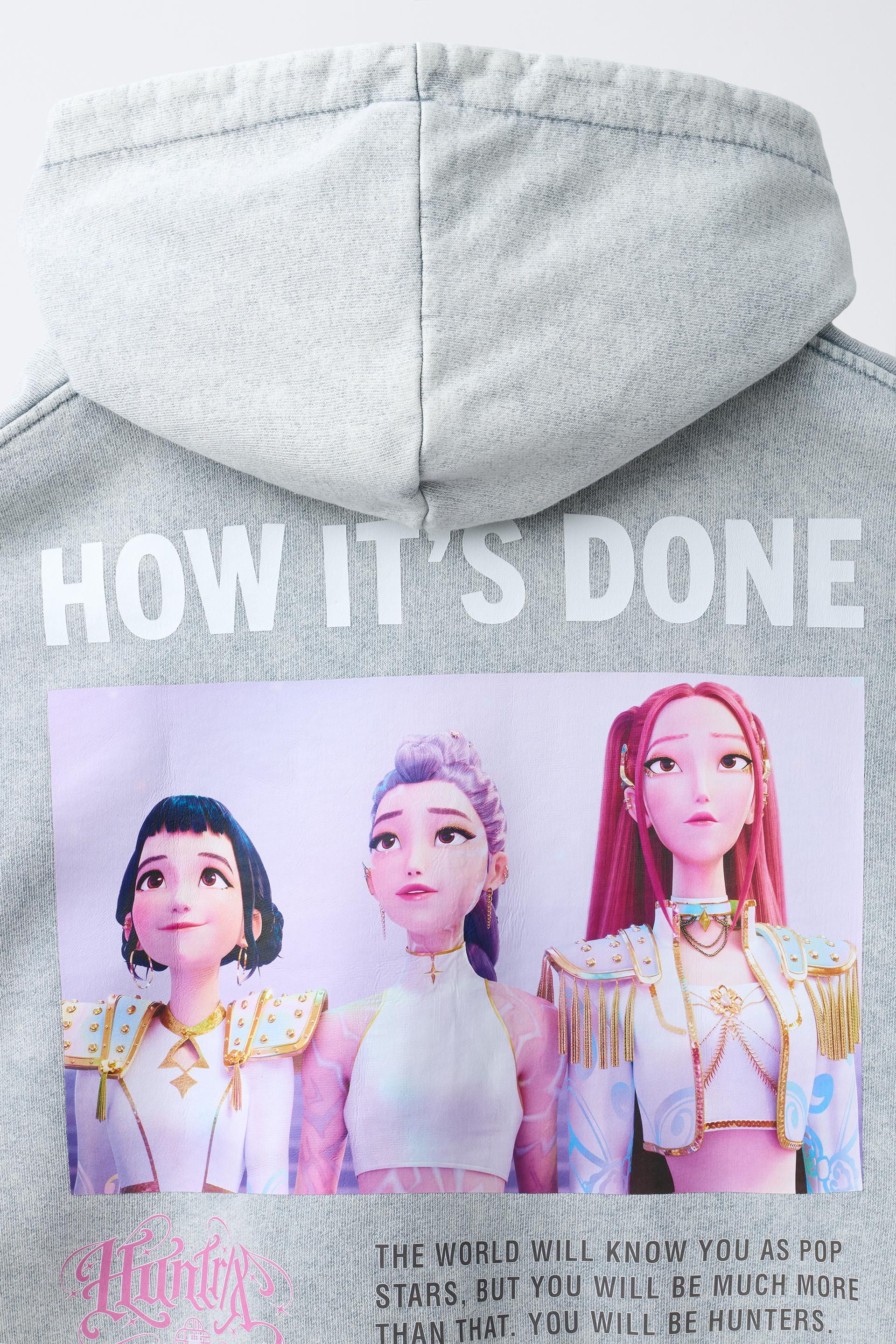 ZARA ТОЛСТОВКА НА МОЛНИИ С ЭФФЕКТОМ ПОТЕРТОСТИ KPOP DEMON HUNTERS™ NETFLIX ©, МЯГКИЙ СЕРЫЙ