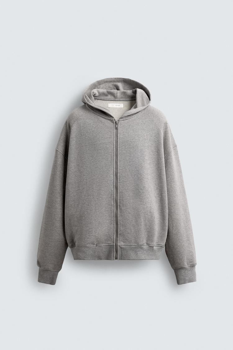 ZARA ТОЛСТОВКА НА МОЛНИИ С КАПЮШОНОМ И ЭТИКЕТКОЙ, СЕРЫЙ МЕЛАНЖ