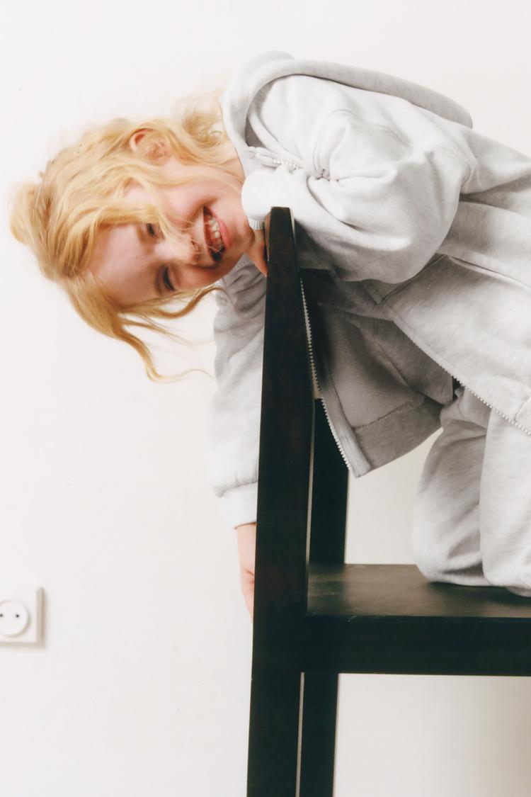 ZARA ТОЛСТОВКА НА МОЛНИИ С КАПЮШОНОМ, СЕРЫЙ МЕЛАНЖ