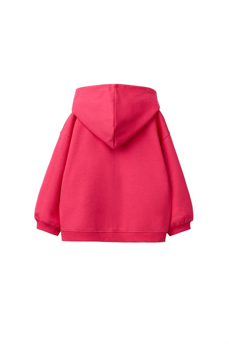 ZARA ТОЛСТОВКА НА МОЛНИИ С РЕЛЬЕФНЫМ ТЕКСТОМ И ЭФФЕКТОМ INTERLOCK, КЛУБНИЧНЫЙ