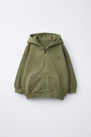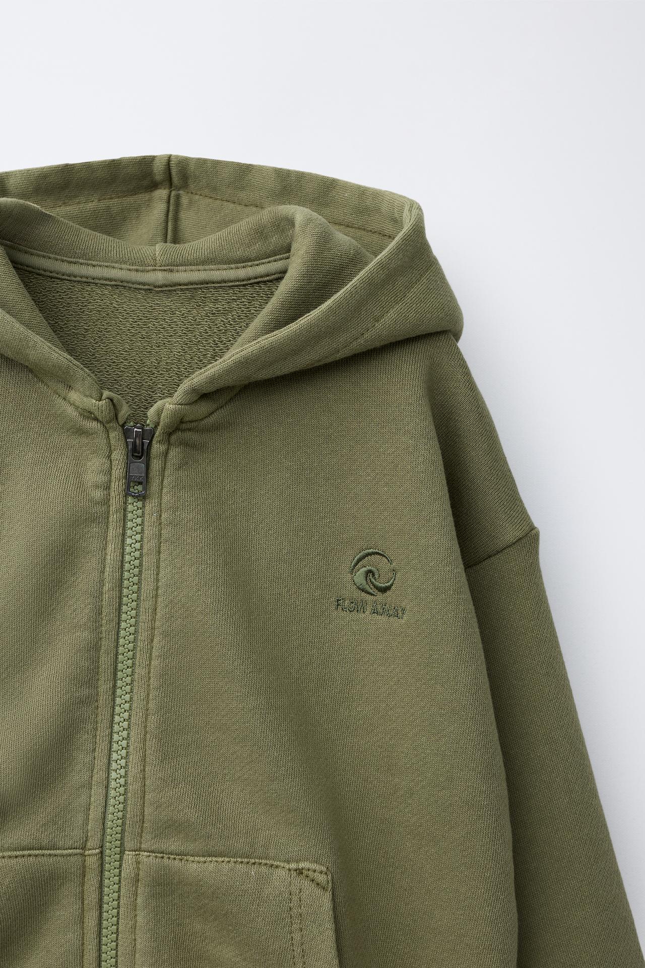 ZARA ТОЛСТОВКА НА МОЛНИИ С ВЫШИТЫМ ЛОГОТИПОМ, ХАКИ