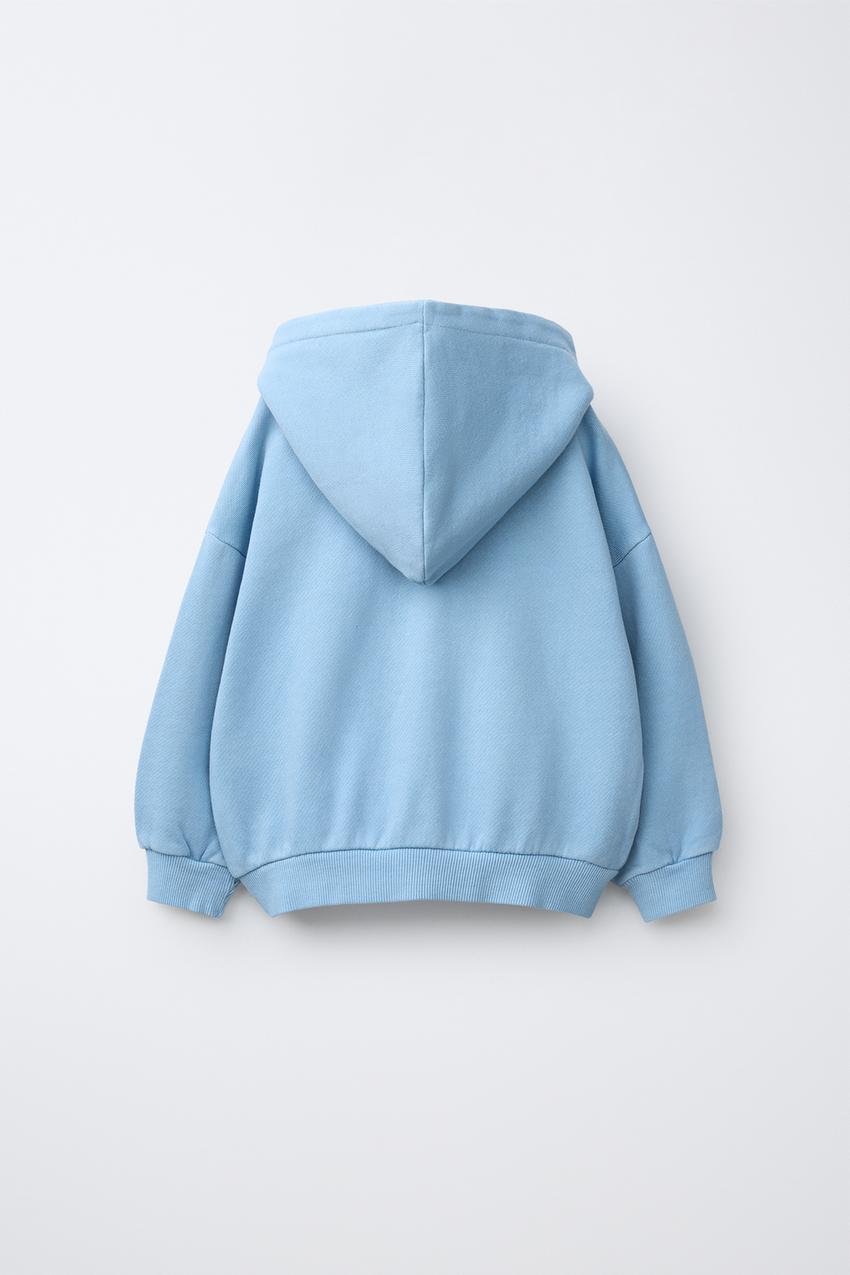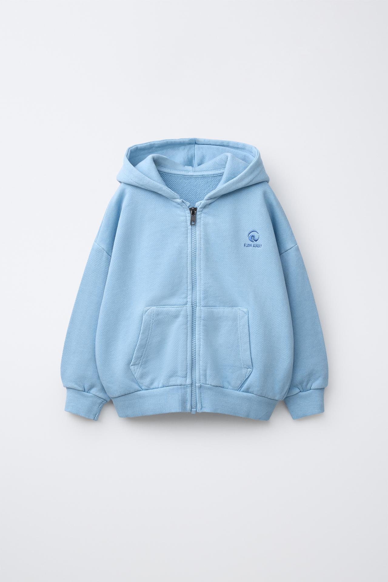 ZARA ТОЛСТОВКА НА МОЛНИИ С ВЫШИТЫМ ЛОГОТИПОМ, ЛИНЯЛЫЙ СИНИЙ