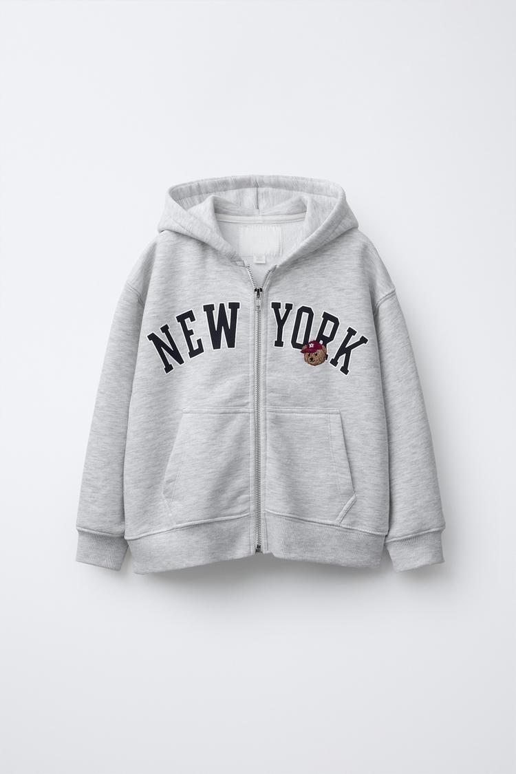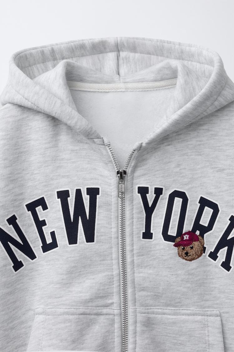 ZARA ТОЛСТОВКА НА МОЛНИИ С ВЫШИВКОЙ «МЕДВЕДЬ», СЕРЫЙ МЕЛАНЖ