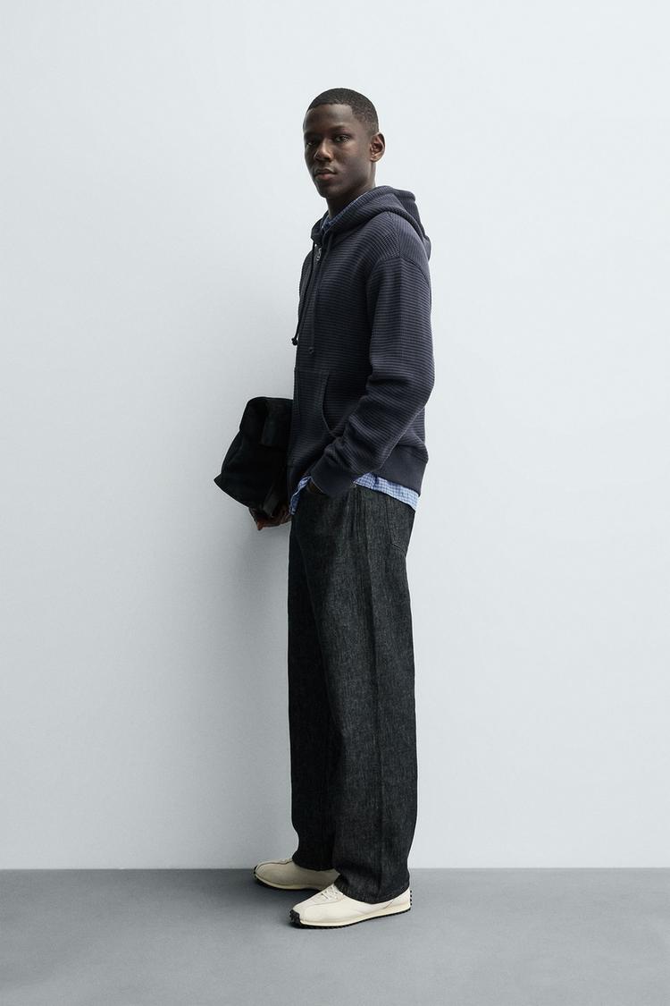 Худи свободного кроя из ткани вафельной структуры. Регулируемый капюшон и длинные рукава. Передние карманы-кенгуру. Отделка в рубчик. Эффект стирки. Застежка-молния спереди.