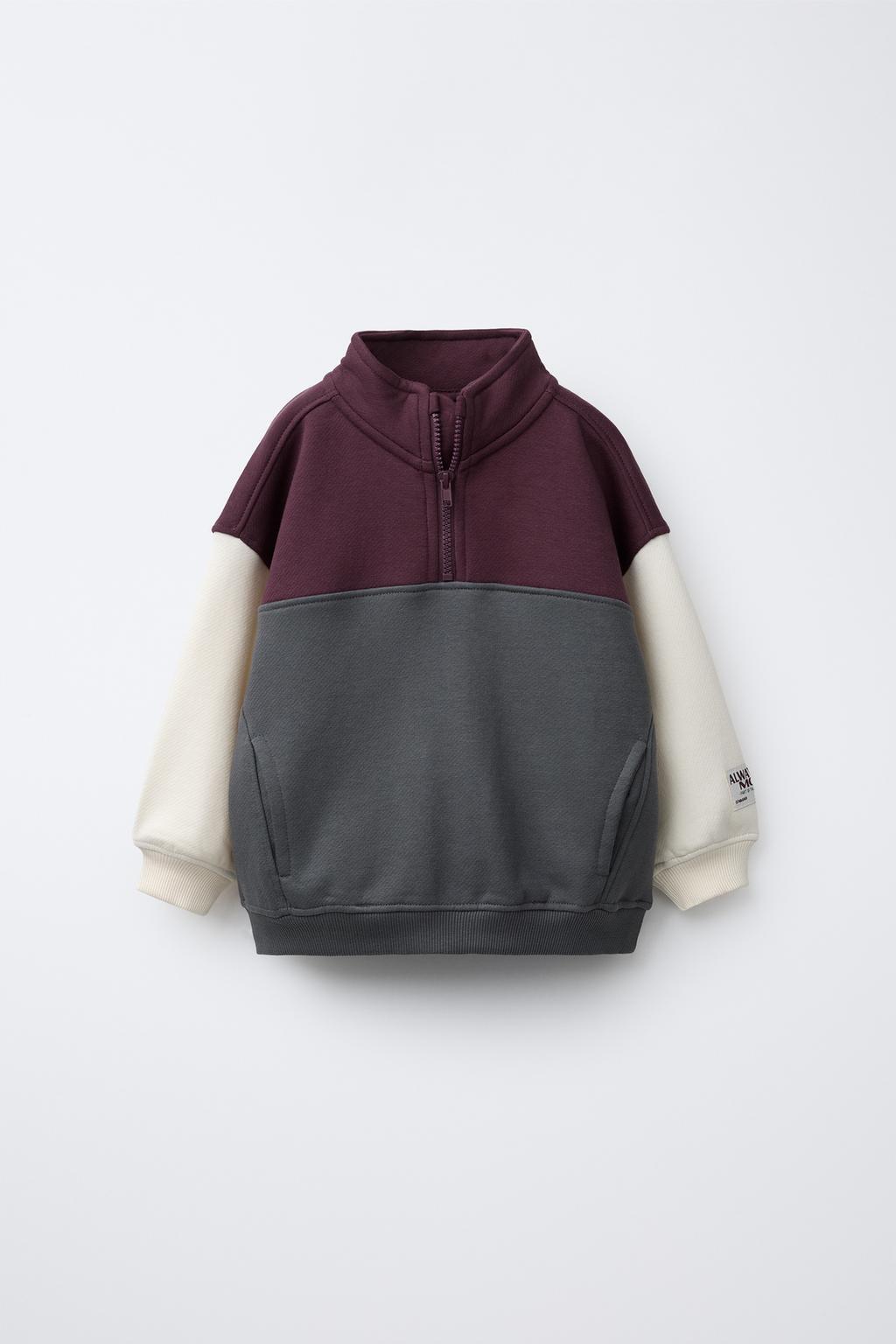 ZARA ТОЛСТОВКА НА МОЛНИИ В СТИЛЕ КОЛОР-БЛОК, СЕРО-ГРАНАТОВЫЙ