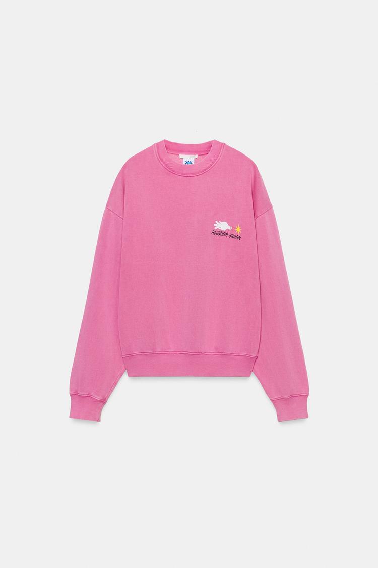 ZARA ТОЛСТОВКА OVERSIZE ИЗ ХЛОПКА С ЭФФЕКТОМ ПОТЕРТОСТИ И ПРИНТОМ AGUSTINA SHUAN, РОЗОВЫЙ