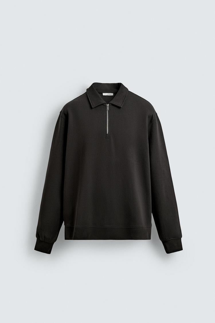 ZARA ТОЛСТОВКА-ПОЛО INTERLOCK НА МОЛНИИ, СЕРО-КОРИЧНЕВЫЙ