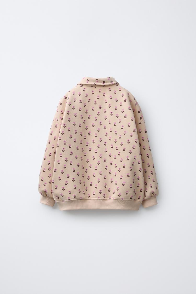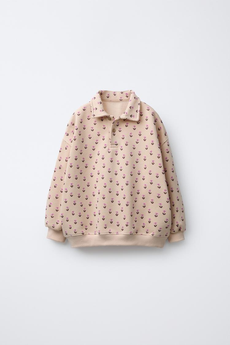 ZARA ТОЛСТОВКА ПОЛО ЦВЕТЫ, ЦВЕТ СЛОНОВОЙ КОСТИ