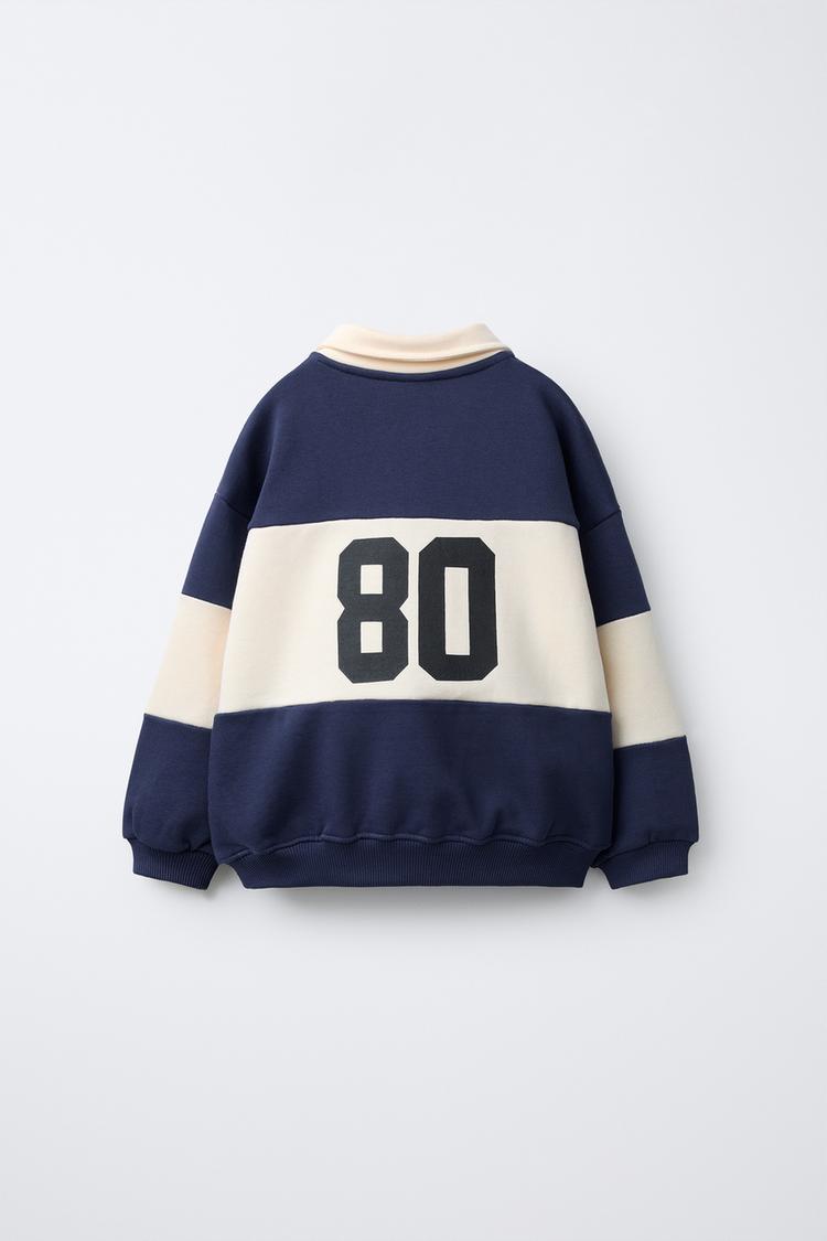 ZARA ТОЛСТОВКА ПОЛО В ПОЛОСКУ С ВЫШИВКОЙ ЖИВОТНОГО, ЭКРЮ/СИНИЙ