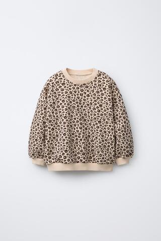 Толстовка с круглым вырезом и длинными рукавами. Детали в рубчик. Анималистический принт. Теплая и мягкая внутренняя ткань с начесом. Ткань: 83% хлопок.