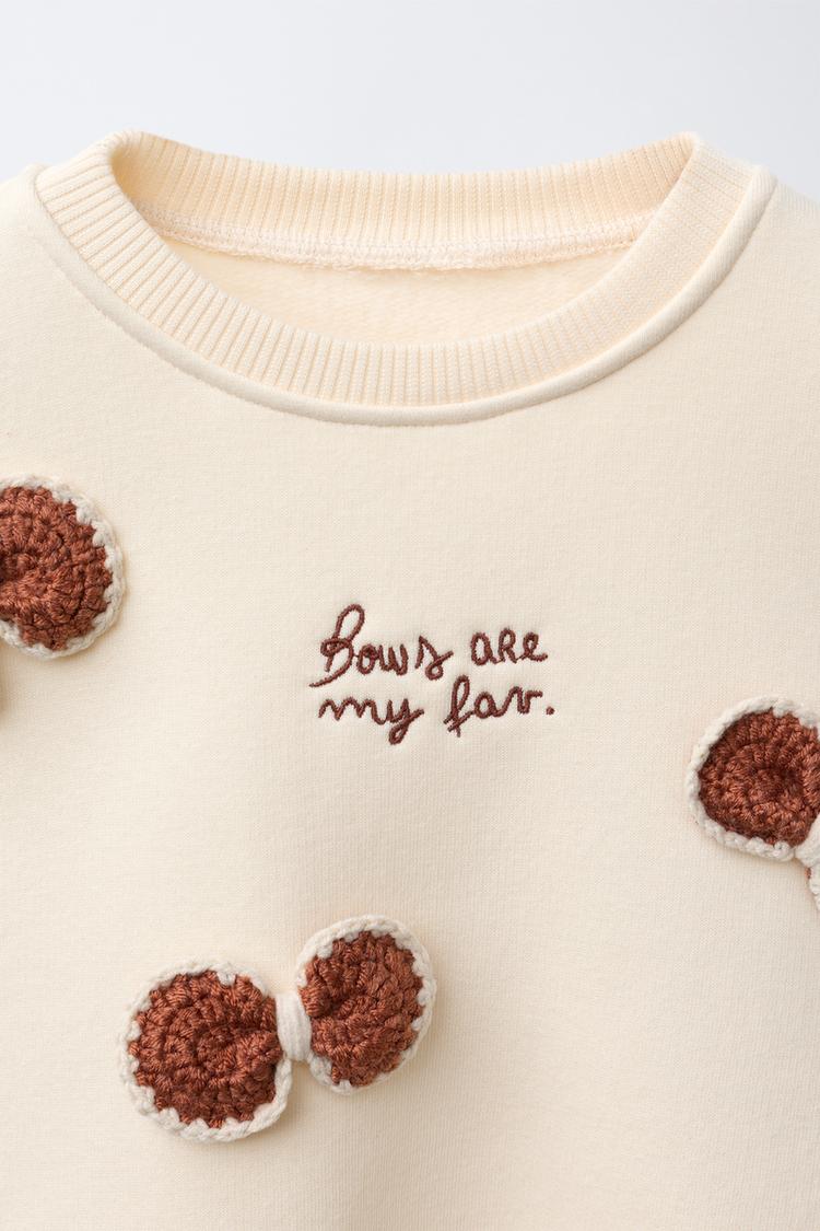ZARA ТОЛСТОВКА С АППЛИКАЦИЕЙ КРЮЧКОМ, ЭКРЮ