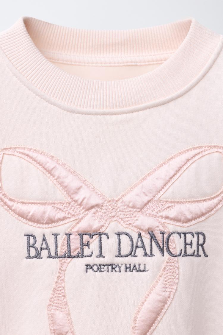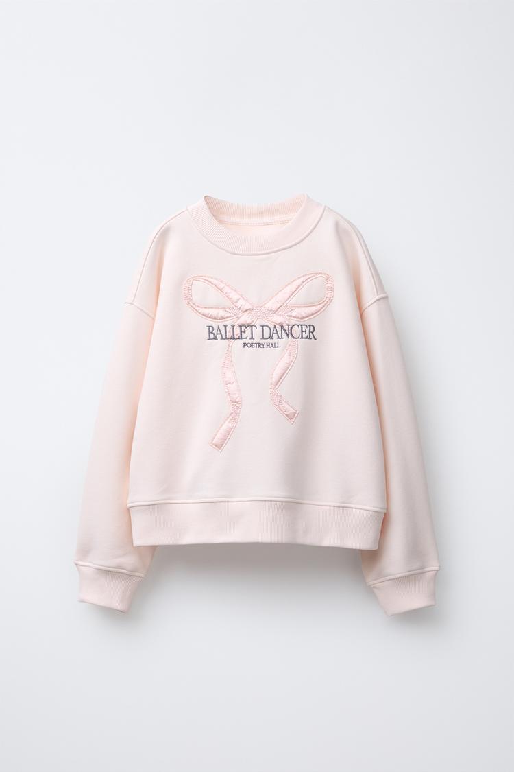 ZARA ТОЛСТОВКА С АТЛАСНЫМ БАНТОМ И ВЫШИВКОЙ, РОЗОВЫЙ