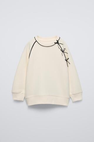 ZARA ТОЛСТОВКА С БАНТАМИ, ЭКРЮ
