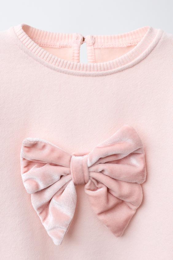 ZARA ТОЛСТОВКА С БАНТОМ ИЗ ВЕЛЬВЕТА, РОЗОВЫЙ