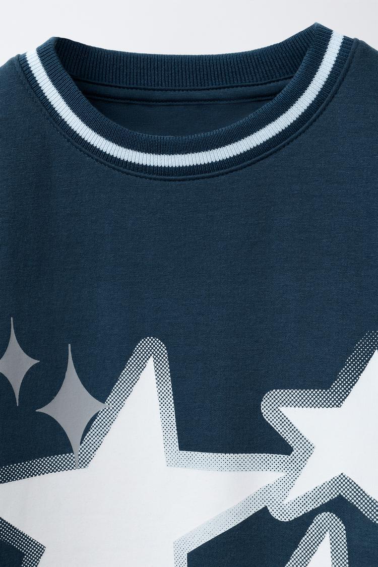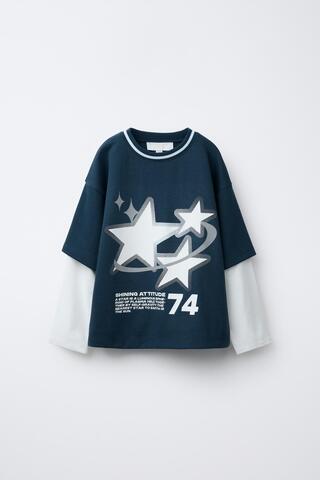 ZARA ТОЛСТОВКА С ДВОЙНЫМИ РУКАВАМИ И ПРИНТОМ, СИНИЙ