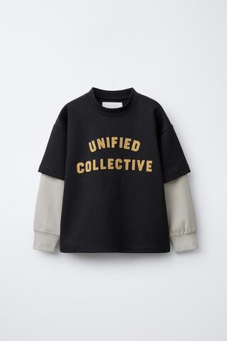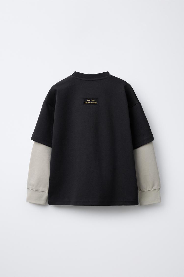 ZARA ТОЛСТОВКА С ДВОЙНЫМИ РУКАВАМИ В СТИЛЕ ПРЕППИ, ТЕМНЫЙ АНТРАЦИТ