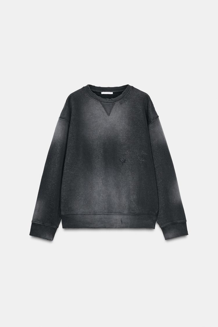 ZARA ТОЛСТОВКА С ЭФФЕКТОМ ПОТЕРТОСТИ, ЧЕРНЫЙ