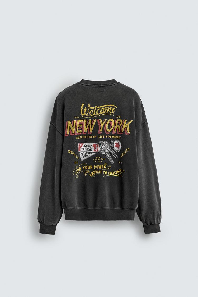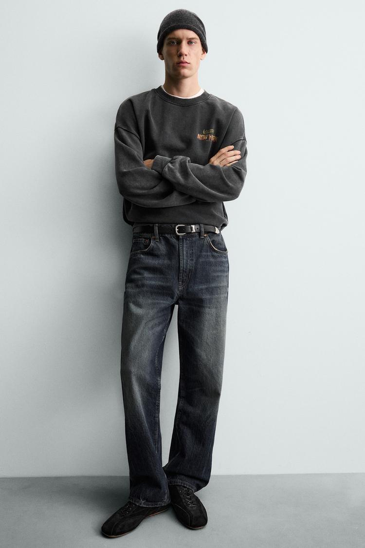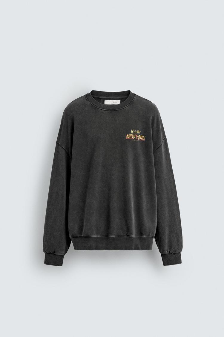 ZARA ТОЛСТОВКА С ЭФФЕКТОМ ПОТЕРТОСТИ И НАДПИСЬЮ, АНТРАЦИТОВО-СЕРЫЙ