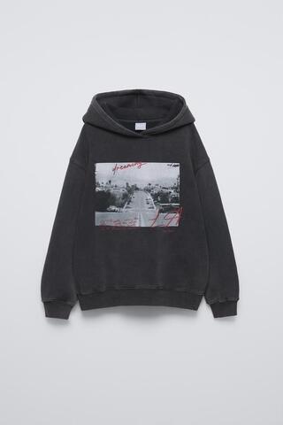 ZARA ТОЛСТОВКА С ЭФФЕКТОМ ПОТЕРТОСТИ И ПРИНТОМ, АНТРАЦИТОВО-СЕРЫЙ